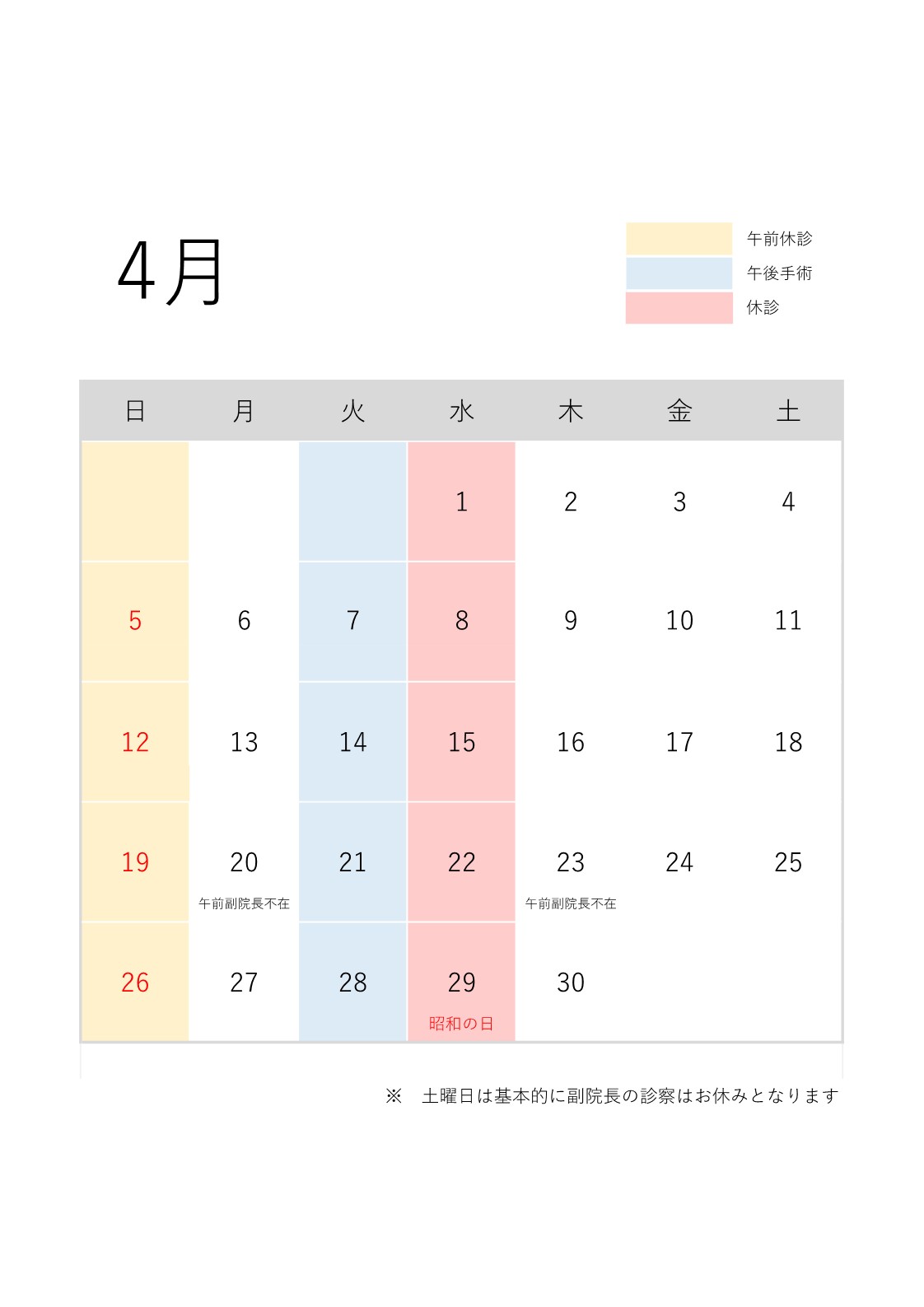副院長不在のお知らせ・4月の診療案内